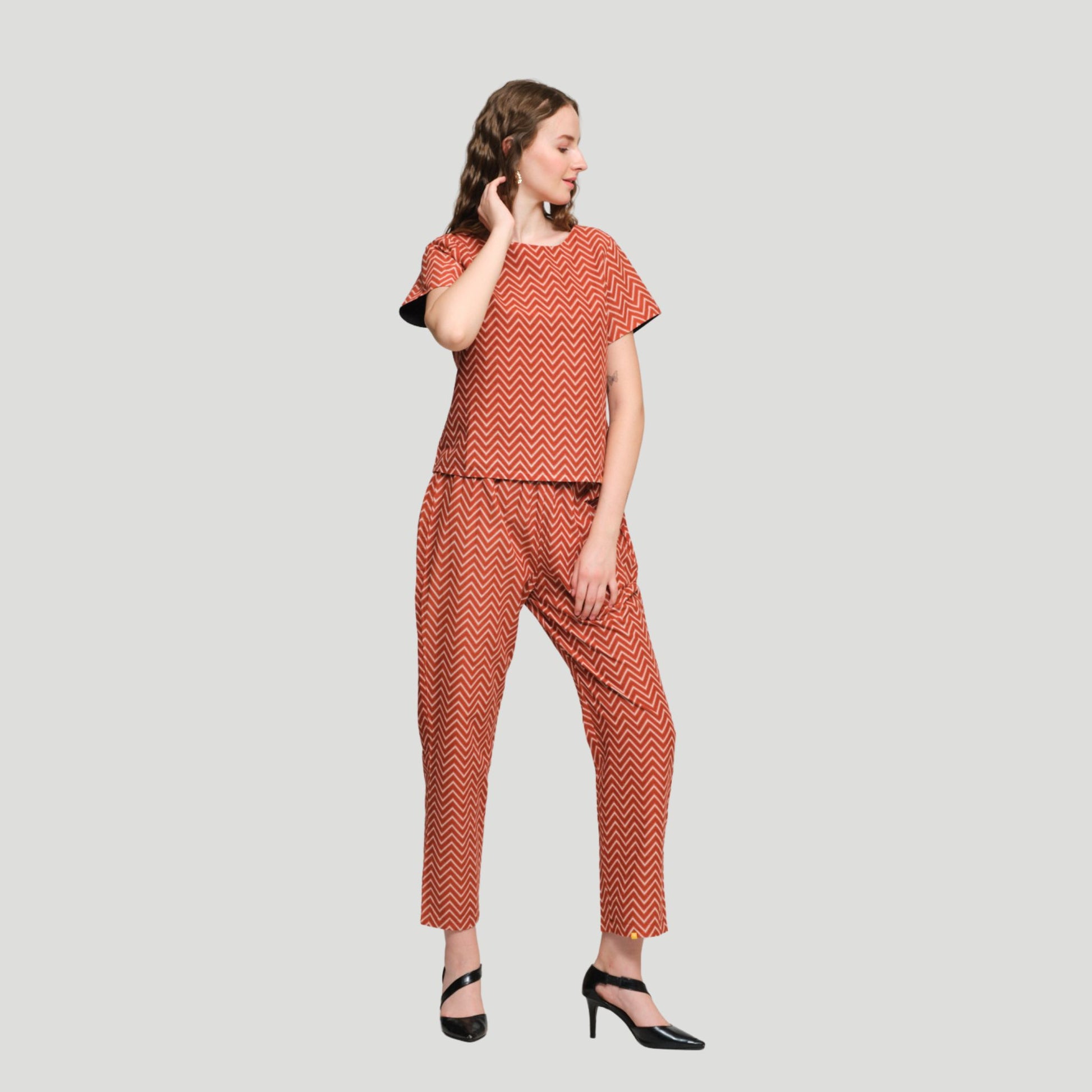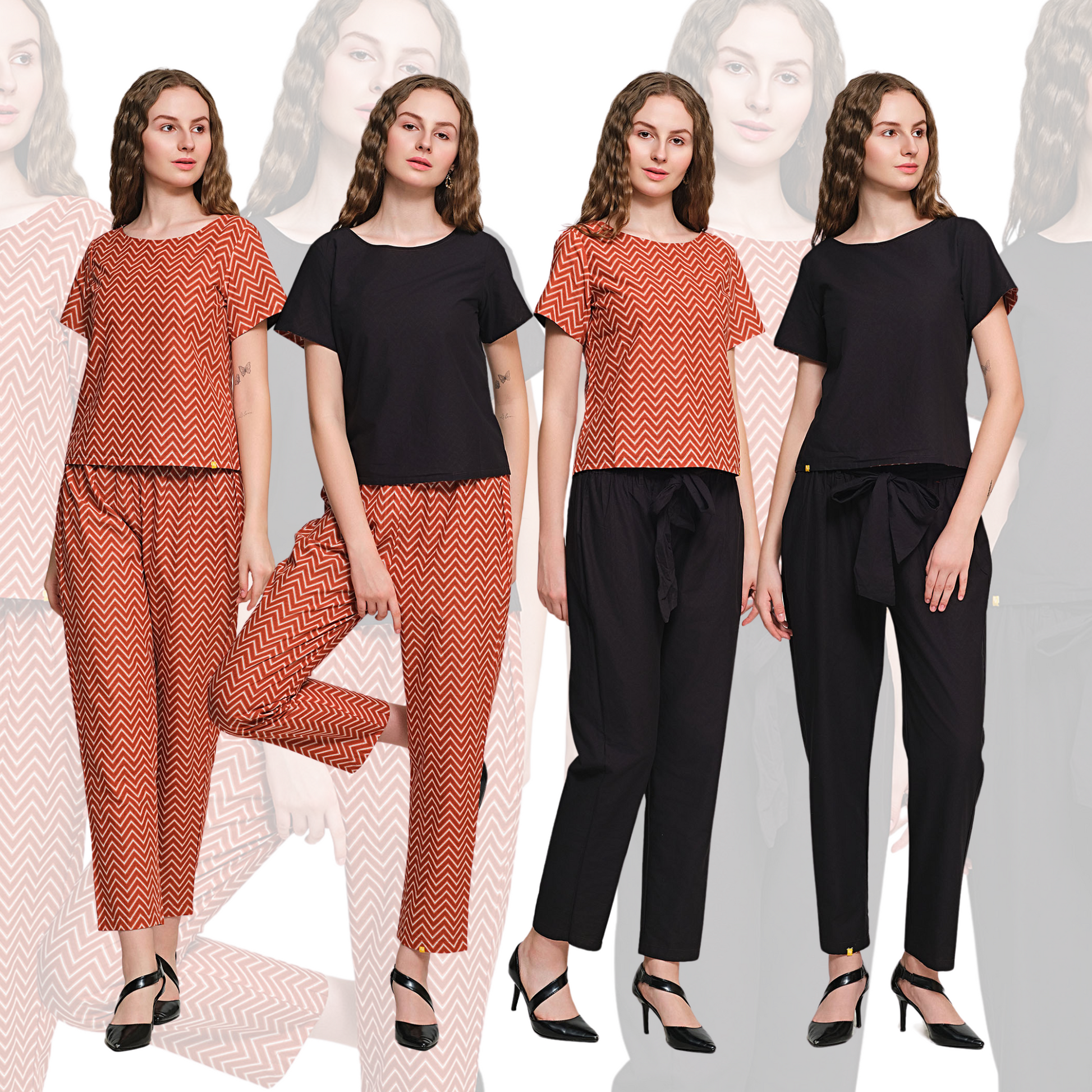 Discover the ultimate in versatile fashion with our 4-in-1 Reversible Co-Ord Set. This innovative outfit features a reversible top and reversible pants, giving you four unique looks in one chic ensemble. Perfect for women who value sustainable fashion, multi-functional clothing, and effortless style.