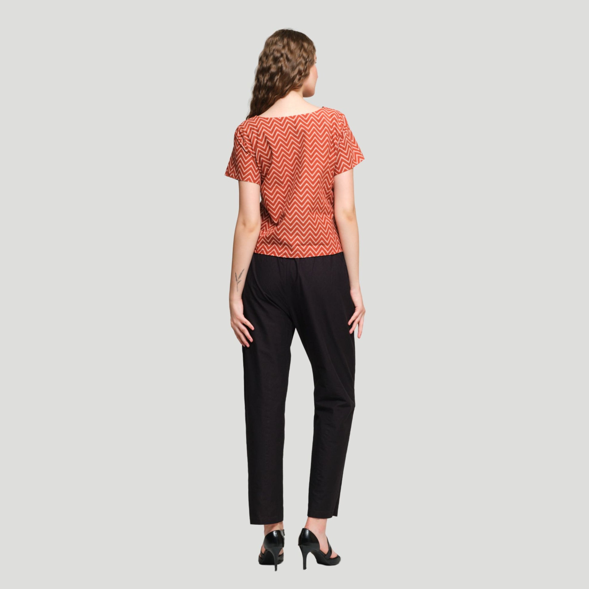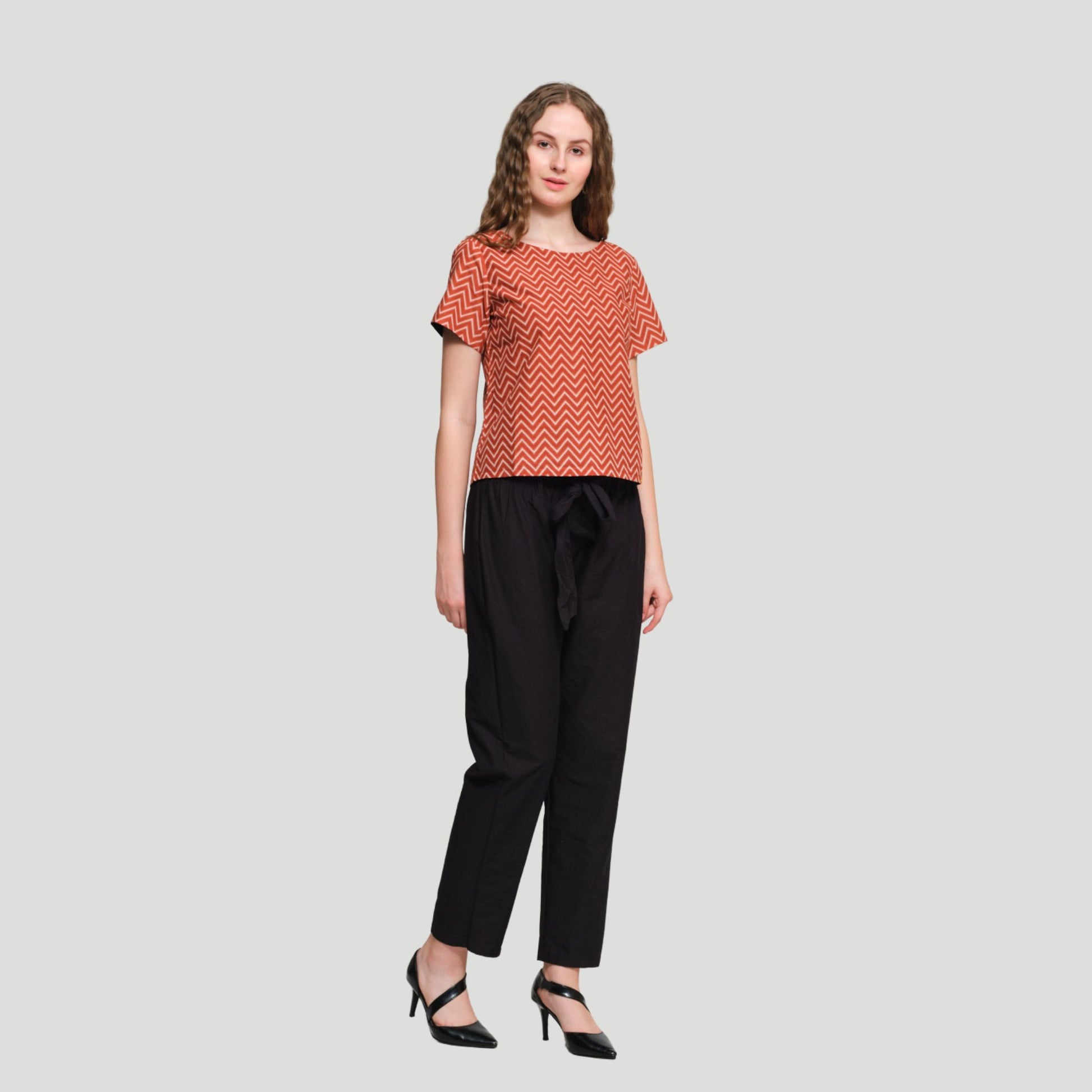 Look 3 - Printed top with solid color pants