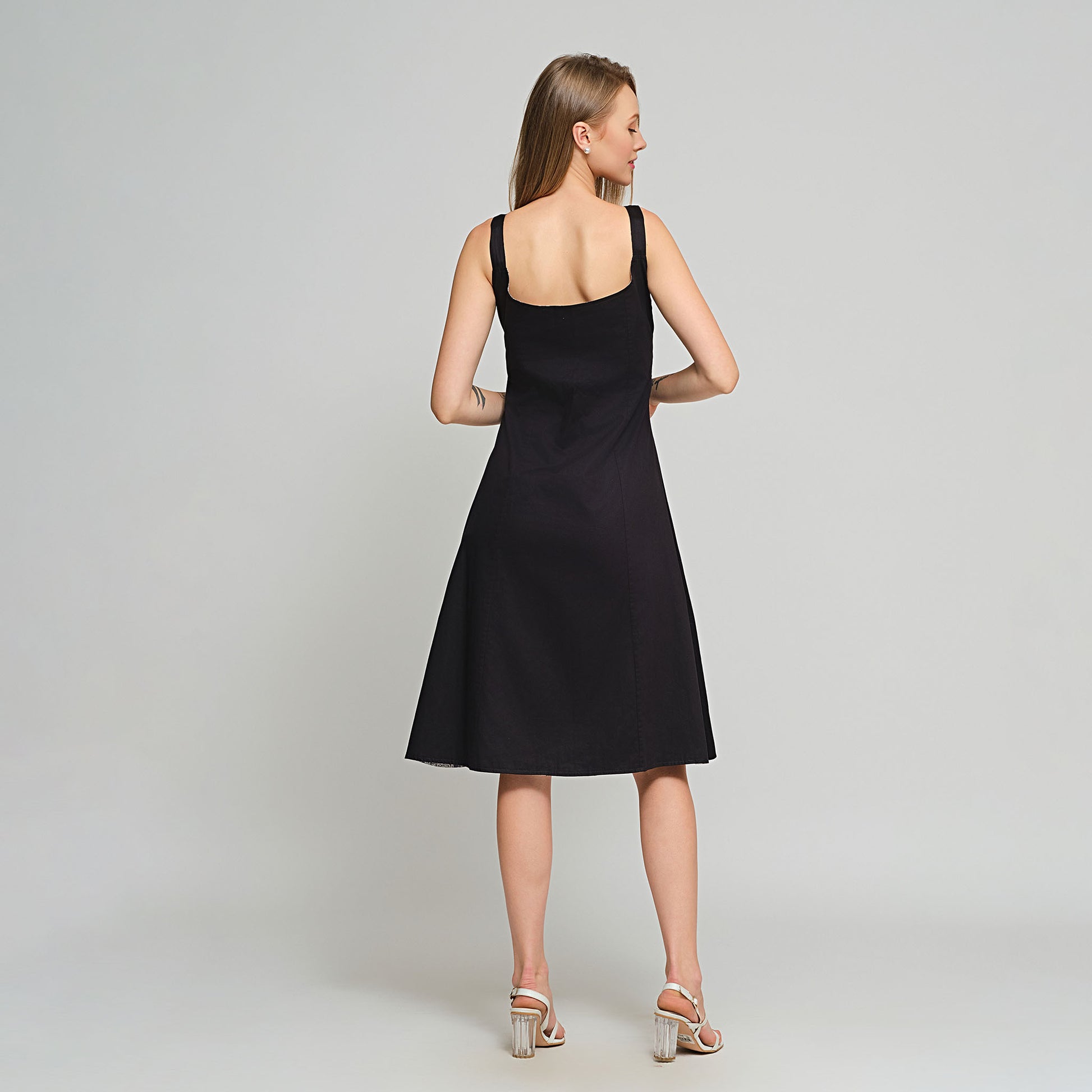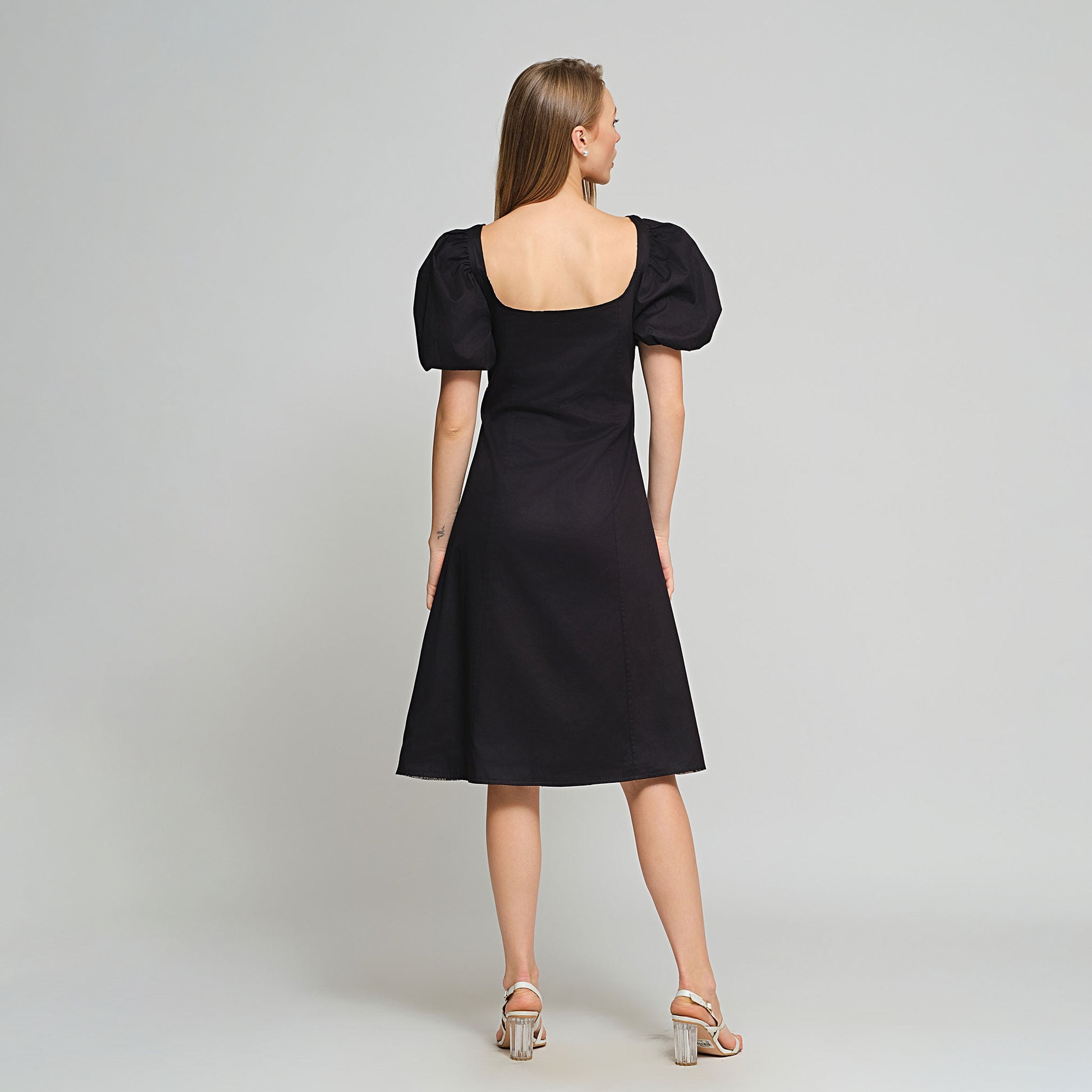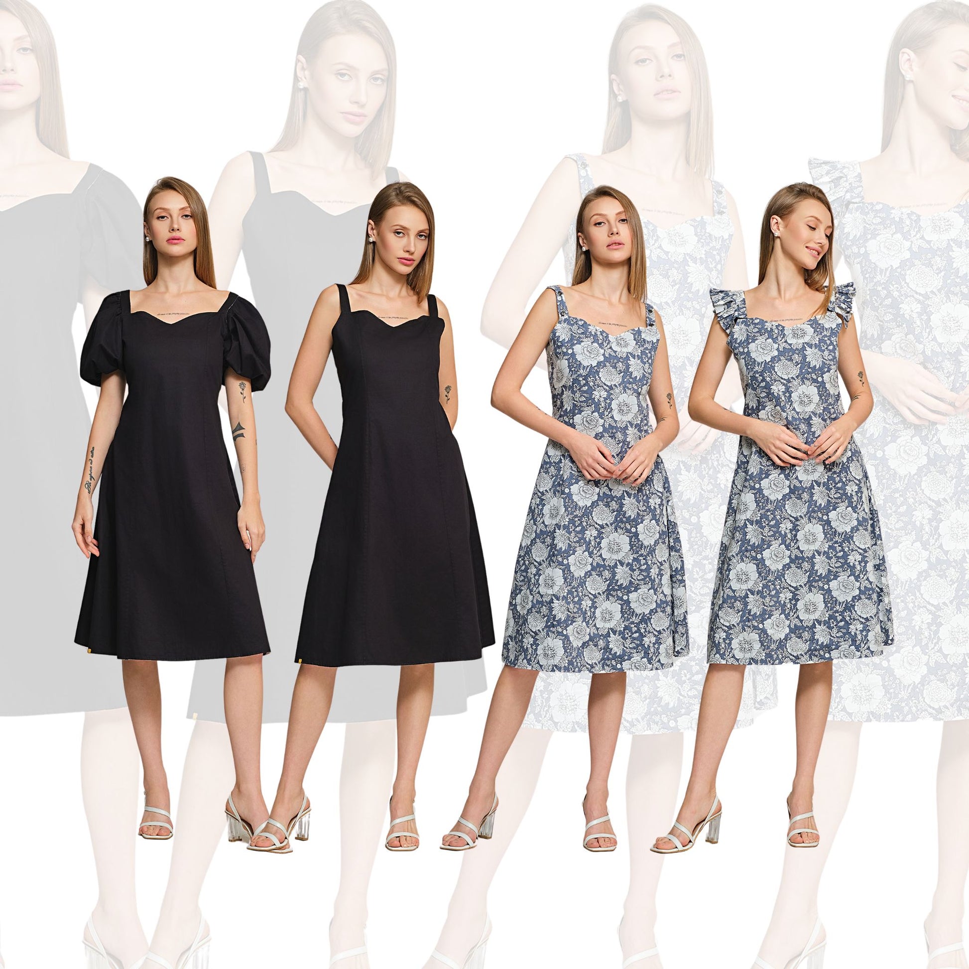 Discover versatility with our Reversible Dress, offering two stylish looks in one. The black side features chic puffed sleeves, while the printed side showcases frill sleeves for a playful touch. Perfect for effortless style changes on the go.