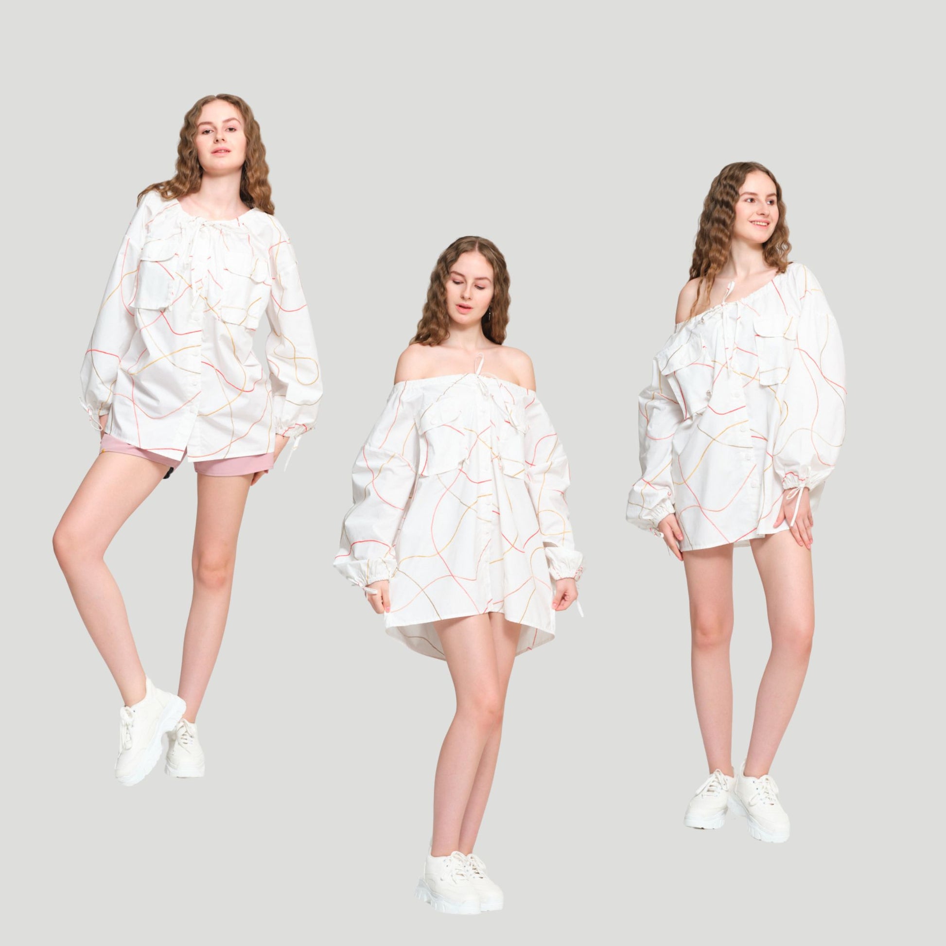 Redefine your wardrobe with our Convertible Oversized Top, designed to offer multiple styling options. Adjust the neckline to suit your mood—wear it closed for a classic look, as a one-shoulder for a trendy vibe, or completely off-shoulder for a bold statement. Style it tucked in for a chic top look, or wear it as a long dress paired with shorts for effortless elegance.