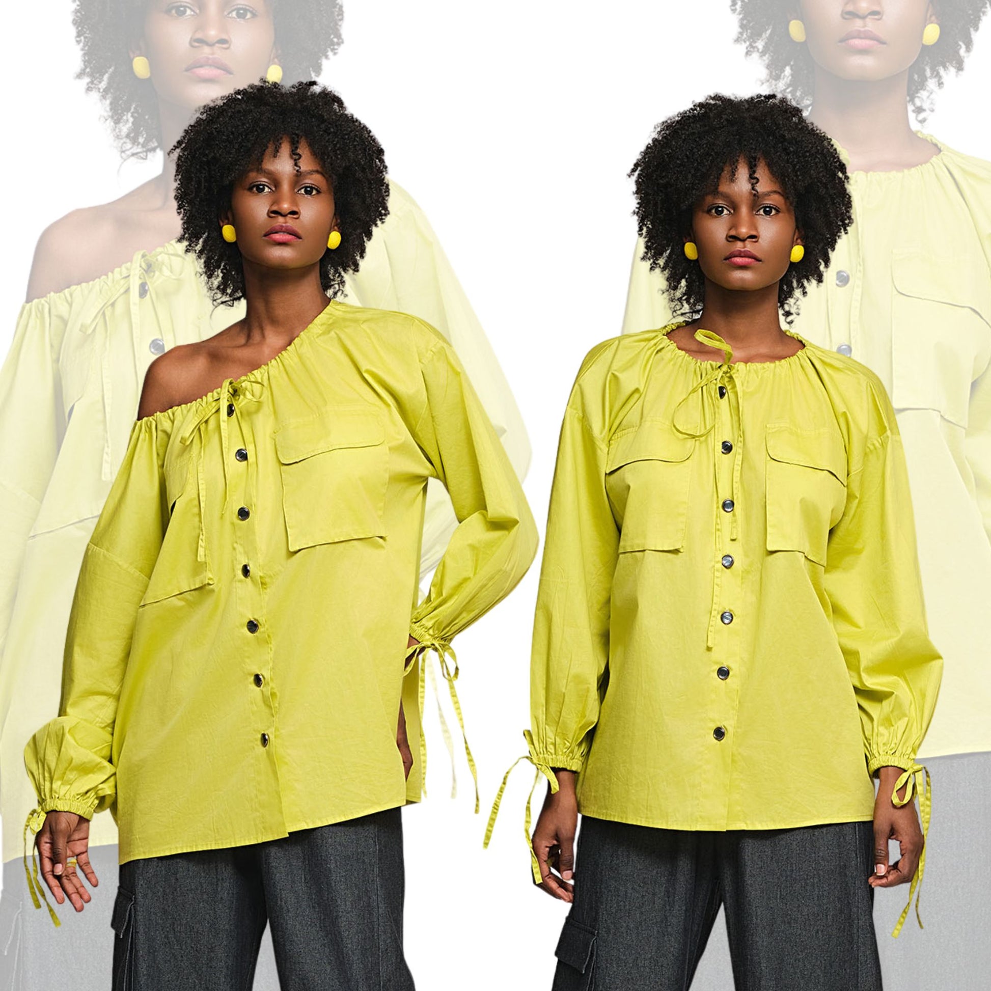 Redefine your wardrobe with our Convertible Oversized Top, designed to offer multiple styling options. Adjust the neckline to suit your mood—wear it closed for a classic look, as a one-shoulder for a trendy vibe, or completely off-shoulder for a bold statement. Style it tucked in for a chic top look, or wear it as a long dress paired with shorts for effortless elegance.