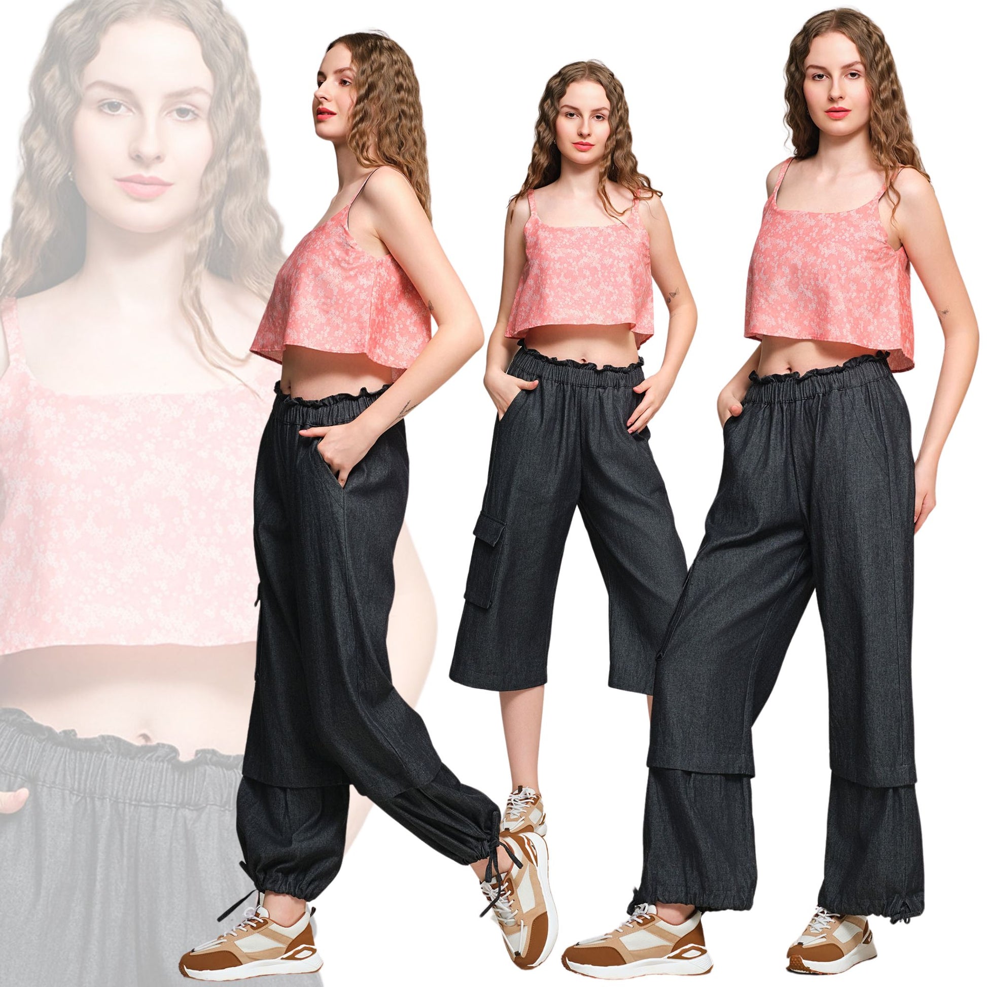Step into ultimate versatility with our Convertible Pants, designed to transform into three distinct styles. Switch effortlessly from relaxed culottes to elegant flared pants or trendy joggers, adapting your look for casual outings, formal events, or party wear. This all-in-one design ensures you’re always perfectly styled for any occasion.