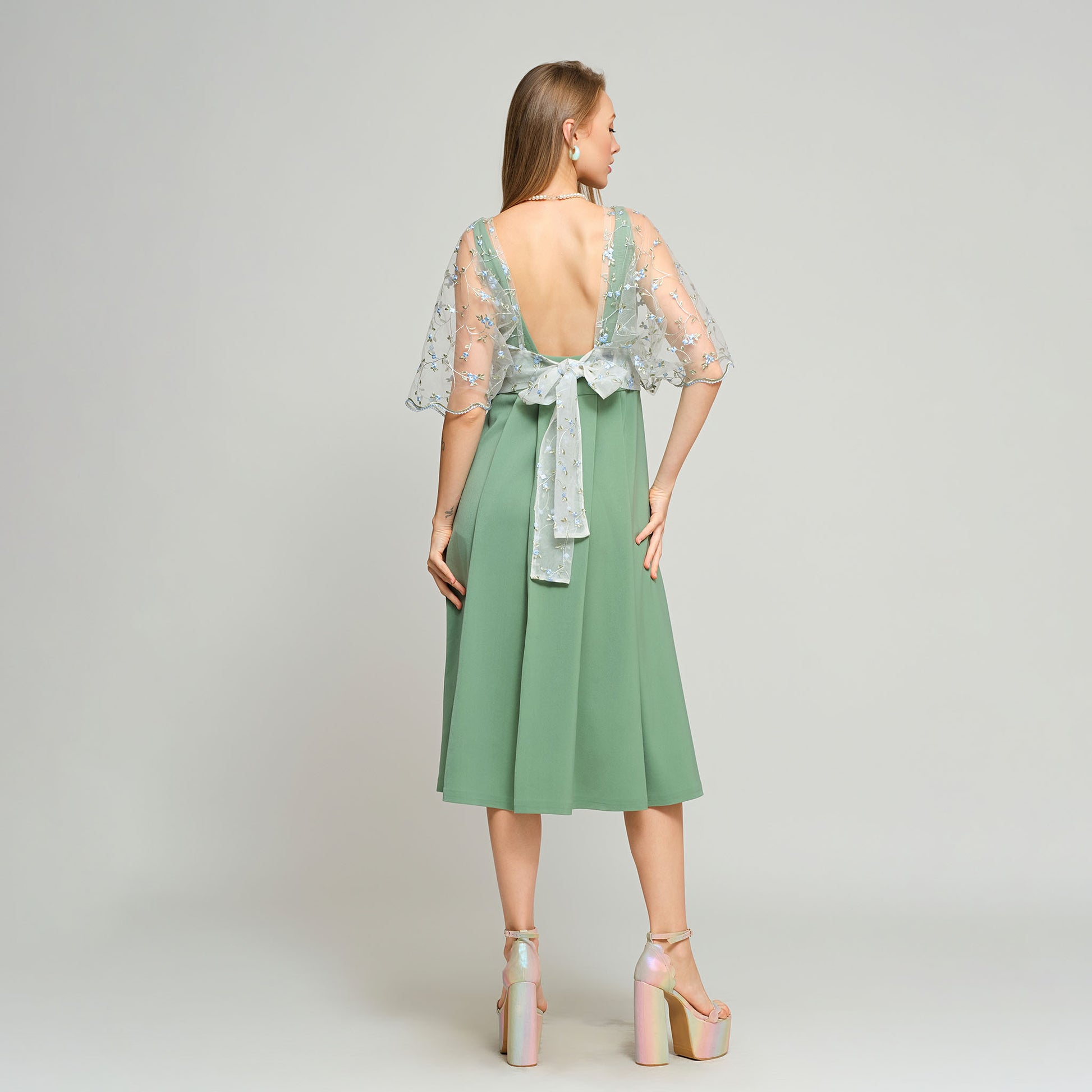 Look 3 - Sleeveless dress with an embroidered detachable cape