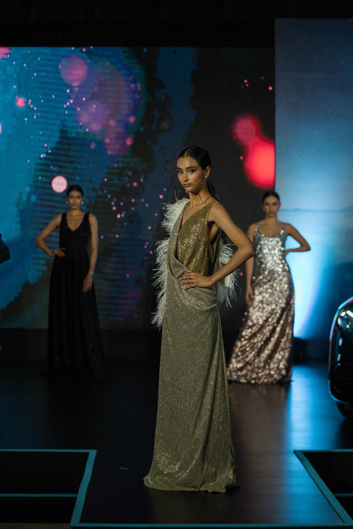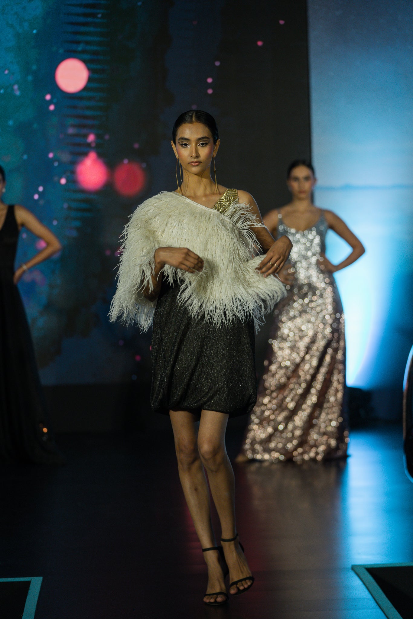 The Dreamer maxi dress stands out as one of our most adored runway pieces, captivating audiences with its versatile transformation from a sexy, feminine silhouette to a glamorous long evening maxi dress. Crafted with a beautiful combination of faux feathers and adorned with exquisite embroidery, it exudes an irresistible allure that effortlessly blends sophistication with a touch of sparkle.