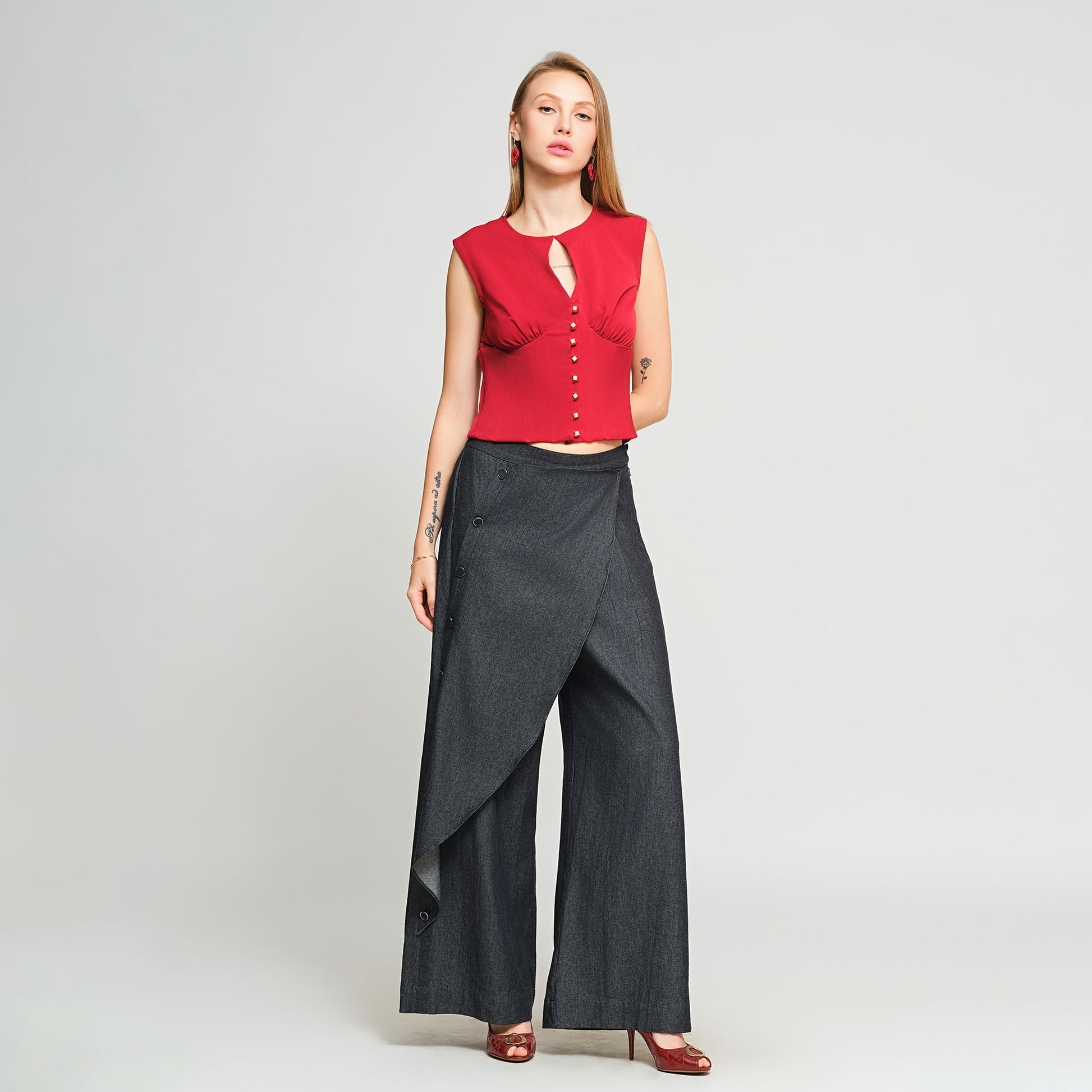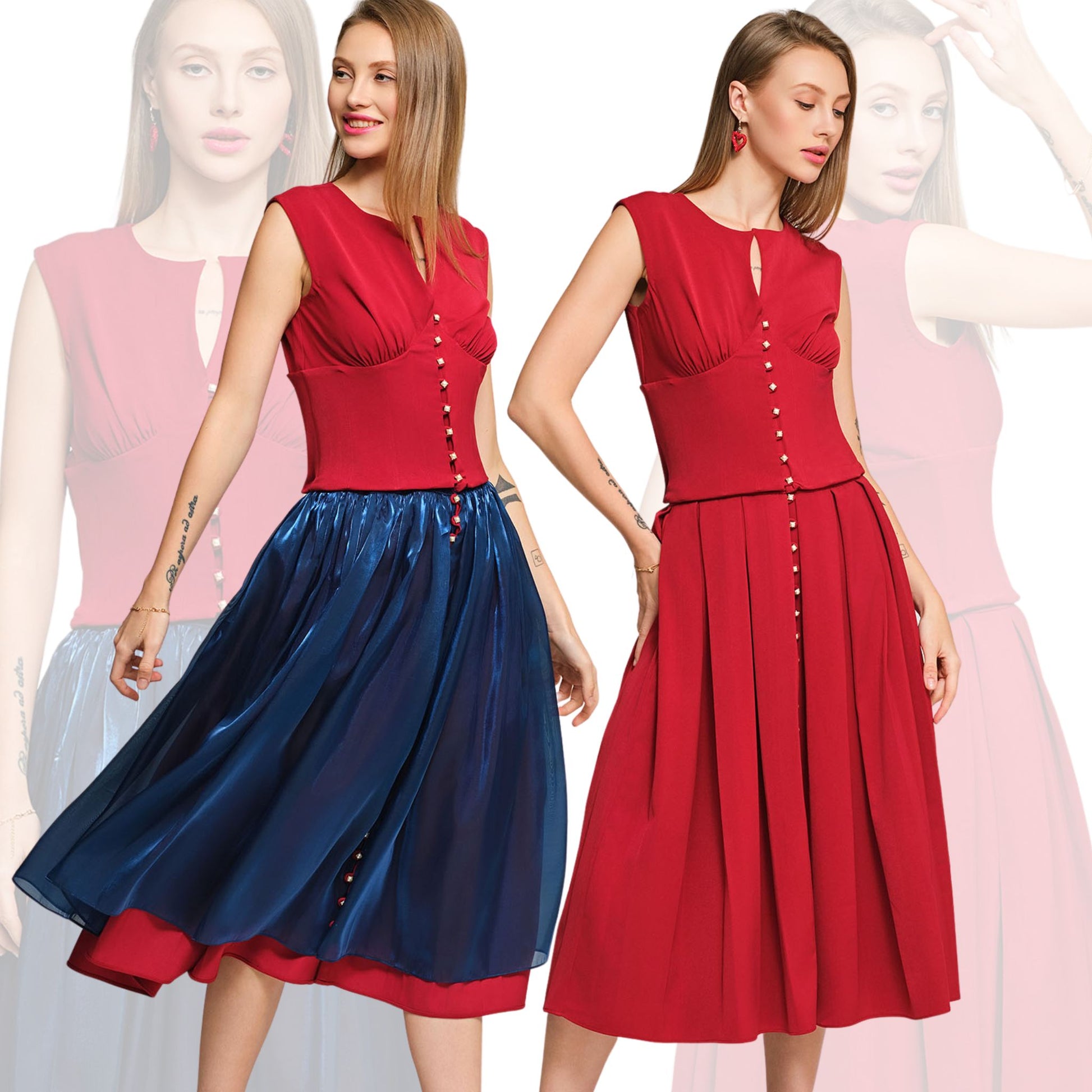Look 2 - Reversible - Detachable Pleated Red Skirt with Corset Top