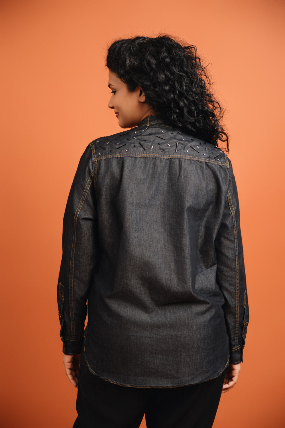 Indulge in understated sophistication with our denim shirt from the "Dark Horizon Collection".